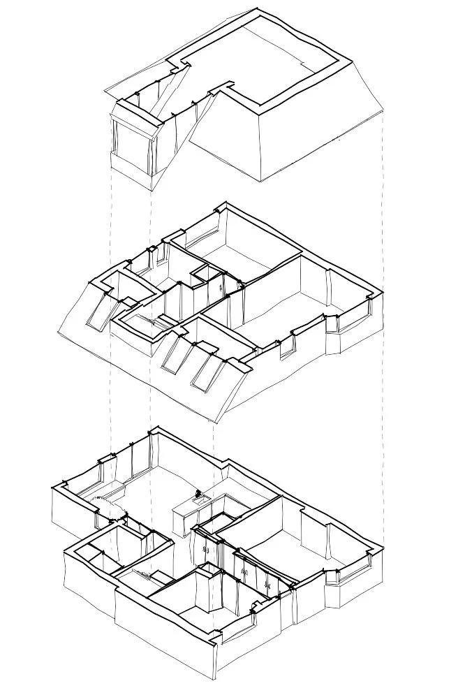 The original layout of this post-war end-of-terrace house was poorly planned, with the staircase awkwardly positioned in the front corner, making it impossible to extend into the loft and significantly limiting natural light in the center of the home. To meet the client's goals of increasing both bedroom and living space, Studio DJL devised an innovative solution: relocating the staircase into a newly designed three-story side extension.
